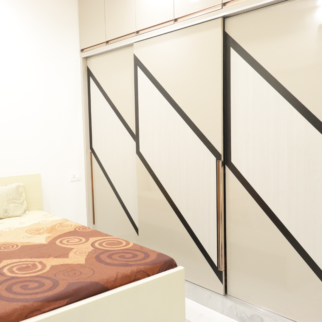 Guest bedroom in the ground floor with base requirement of wardrobe & TV unit along with COT.