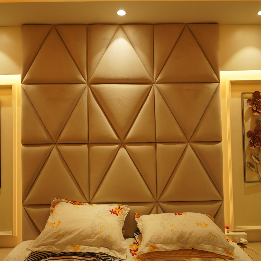 Bedroom Wardrobe color finished with beige laminate matt finish. COT with storage has hydraulic lifting system where suitcase can be stored. Both Bedroom has unique fabric bed back panel with unique upholstery. It’s so cozy and fine quality upholstery.