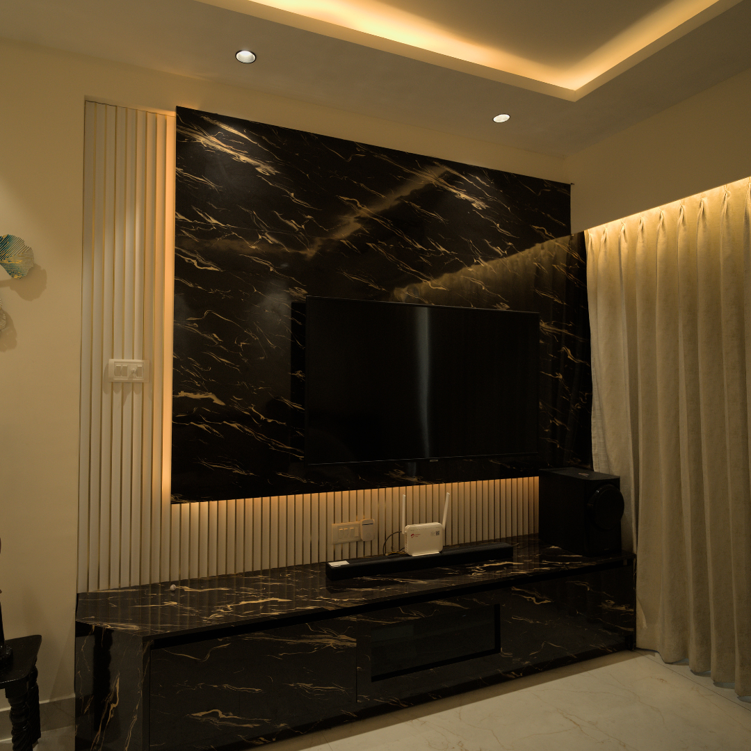 Lighting tone proceeded with neutral COB & warm led strip cove light. To give a classy & Luxury outlook.
